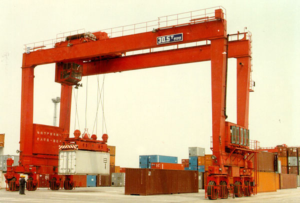 運(yùn)到堆場(chǎng)或后方后,由集裝箱龍門起重機(jī)堆碼起來(lái)或直接裝車運(yùn)走,可加快集裝箱運(yùn)載橋或其他起重機(jī)的周轉(zhuǎn)??啥逊鸥?~4層、寬6排的集裝箱的堆場(chǎng),一般用輪胎式,也有用有軌式的。集裝箱龍門起重機(jī)與集裝箱跨車相比,它的跨度和門架兩側(cè)的高度都較大。為適應(yīng)港口碼頭的運(yùn)輸需要,這種起重機(jī)的工作級(jí)別較高。起升速度為8~10米/分;跨度根據(jù)需要跨越的集裝箱排數(shù)來(lái)決定,*大為60米左右相應(yīng)于20英尺、30英尺、40英尺長(zhǎng)集裝箱的起重量分別約為20噸、25噸和30噸。